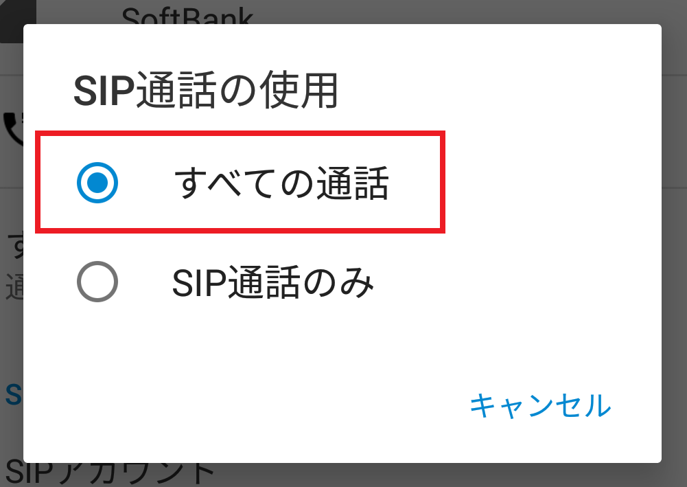 この通り記載知った後、[SIP通話の使用]の設定値を[すべての通話]に